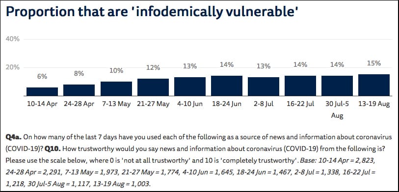 What this decline points to is an emergence of the 'infodemically vulnerable'. This is a group of people who consume little to no news and information about covid-19 and do not trust it even if it reaches them.