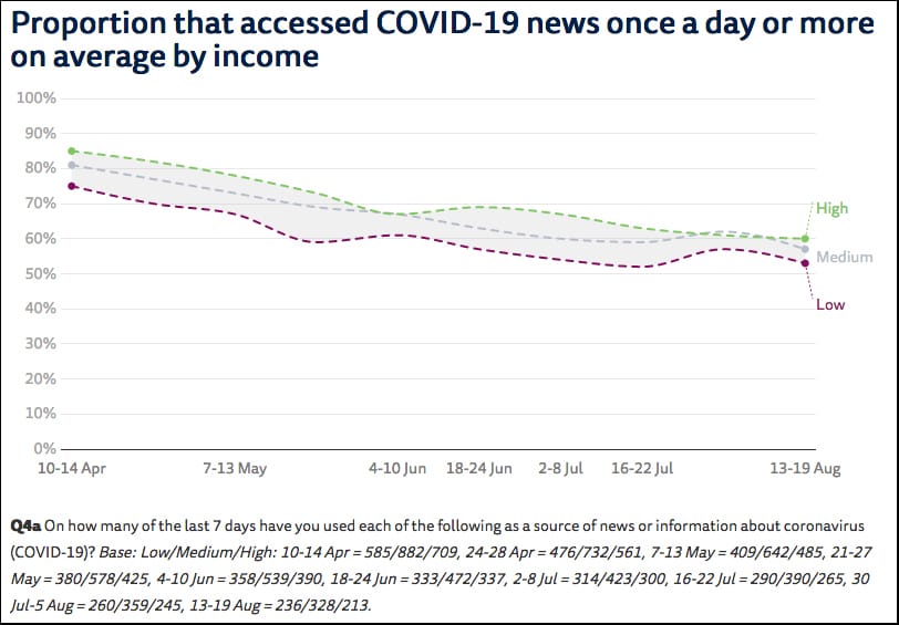 Fresh research by the Reuters Institute for the Study of Journalism (RISJ) reveals that a growing portion of the UK population is at risk of being uninformed or misinformed about the coronavirus pandemic.