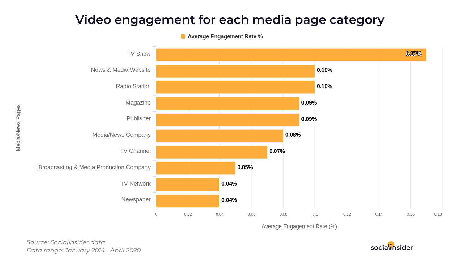 At the other end of the spectrum, videos posted by newspapers and TV networks fail in engaging their audiences, reaching average rates of only 0.04 per cent.