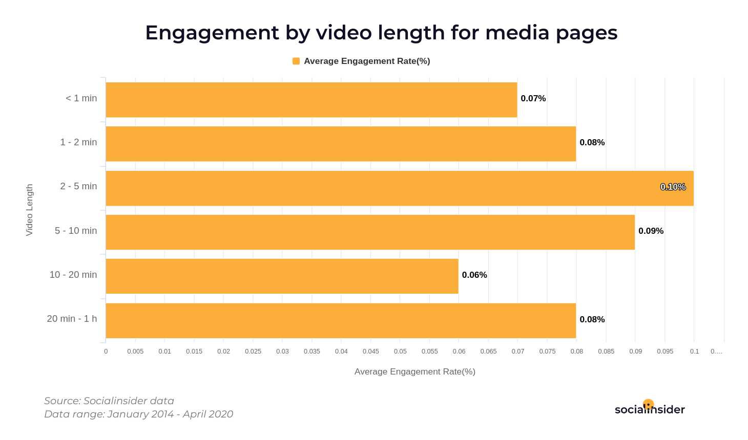 Video length influences engagement. Similar to other industries, media videos that last between two and five minutes achieve higher engagement rates of up to 0.1 per cent.