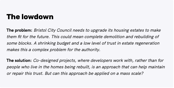 Its first piece looks at co-designed housing projects, where developers work with the occupiers of council properties, to regenerate estates and alleviate fears of displacing communities.