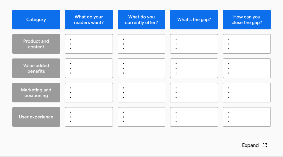 Now that you understand the wants and needs of your audience, match those to your news product. Think of what value you can add (value added benefits), marketing strategies and user experience.