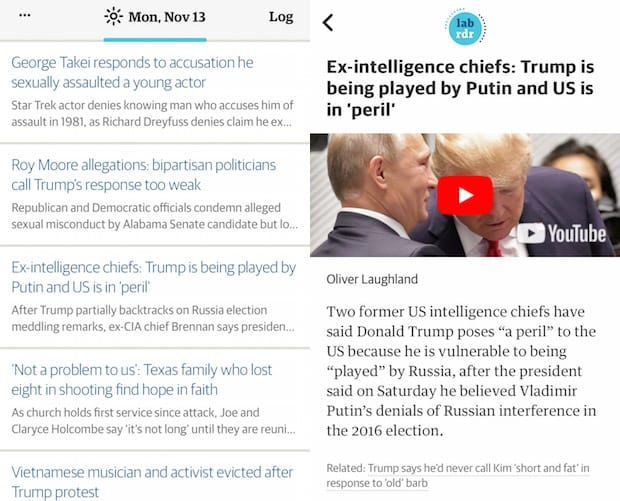 The app, called LabRdr (pronounced 'lab reader'), was released last month, and provides users with a package of Guardian articles twice a day, in time for their morning and evening commute.
