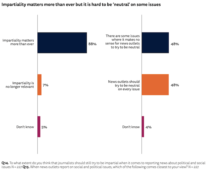 "As a journalist, it will be more important than ever to be a 'specialist' in something," says Newman. "It could be data journalism, video or podcasting, or it could be a specific subject area like climate change or vaccines."