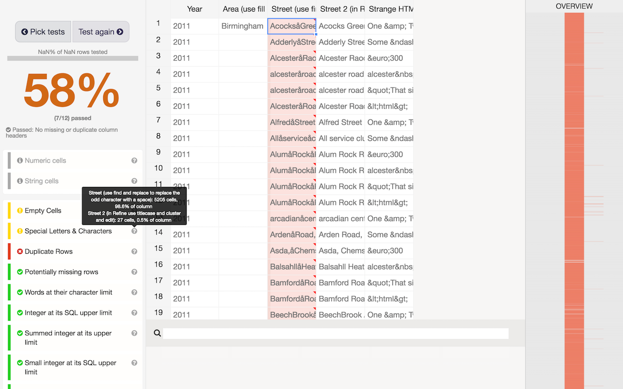 The tool will return a percentage of accuracy as well as the number of tests your dataset has passed, showing a breakdown of the positive results and flagging those identifying potential mistakes or inaccuracies. In our example, the dataset scored 58 per cent, and passed seven out of the 12 tests that were run on it.