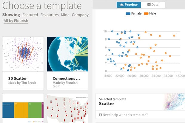 Flourish also provides examples of what each visualisation will look like when finished, so users don't have to spend time creating something if another template suits their data better.