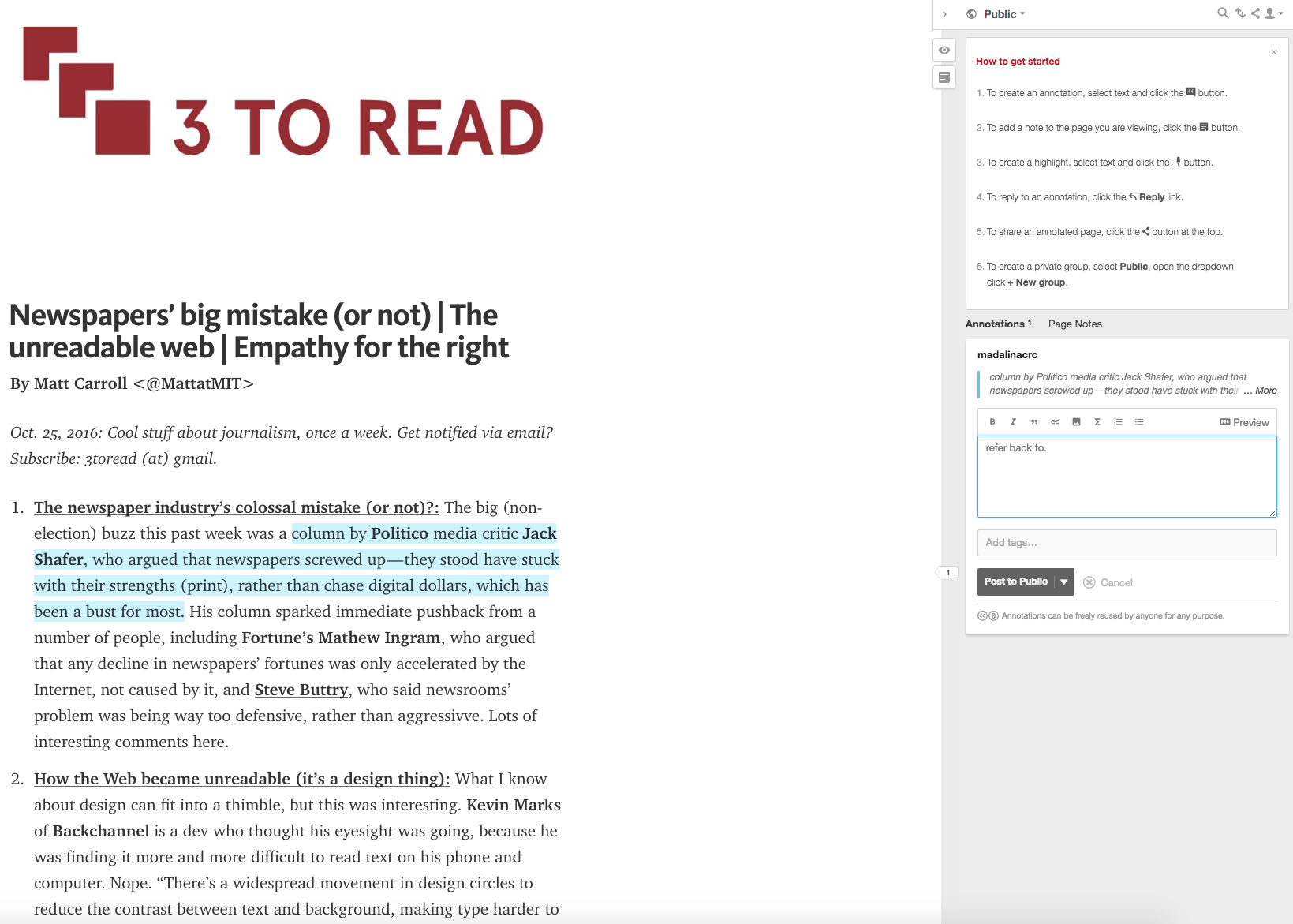 Tool for journalists: Hypothes.is, a Chrome extension for annotations