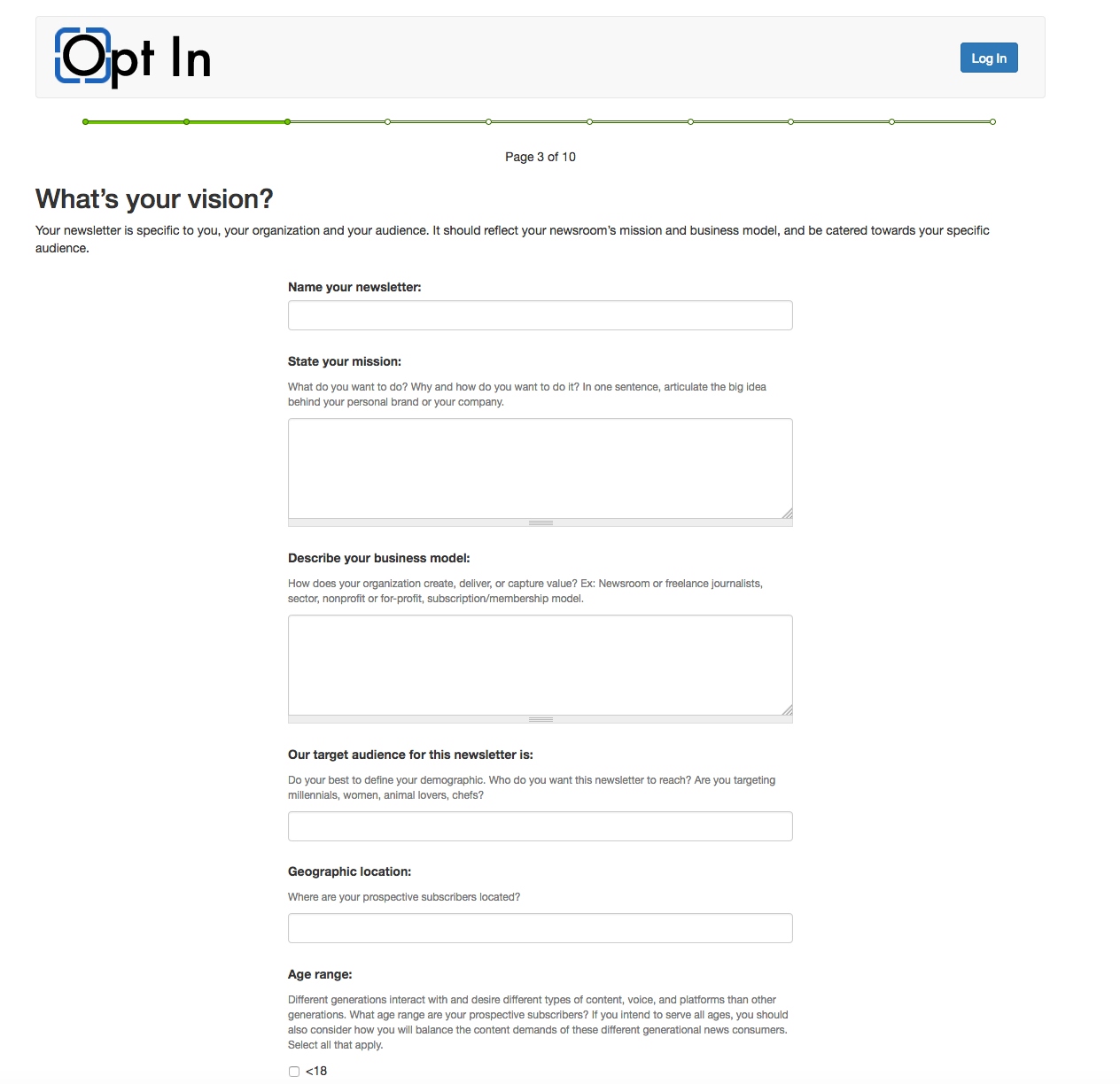 The process takes about an hour, and you'll be asked a variety of questions about your newsletter, and will have to write down, among other answers, what your vision is, your business model and geographic location. All of this will help you to differentiate between the different types of newsletter models and what is best for you.