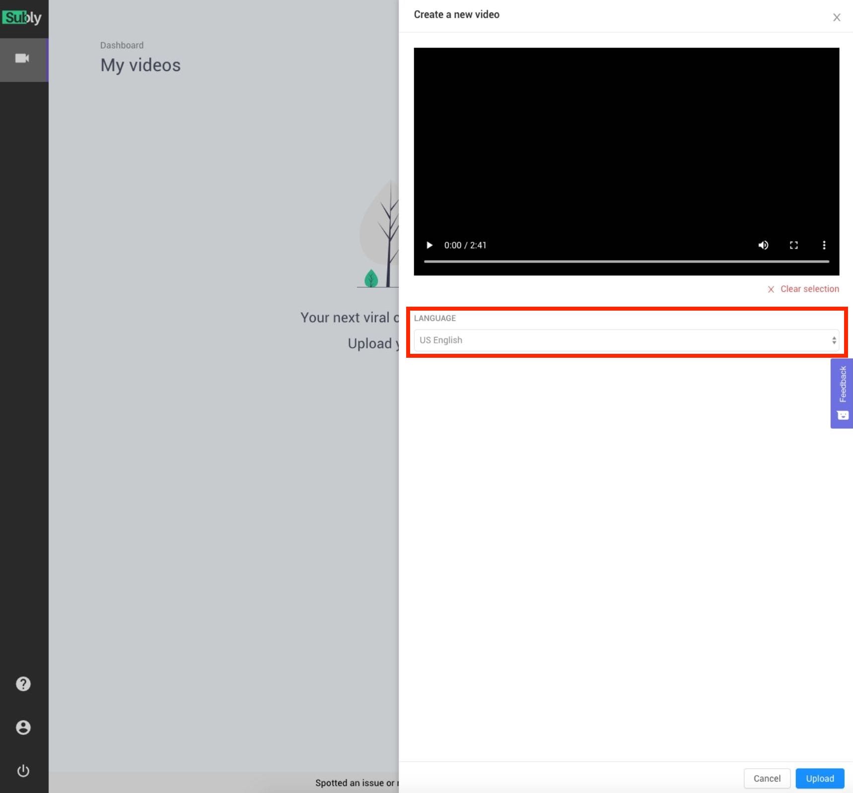 Once you create a free account, you are able to upload a video to be transcribed from your Dashboard - simply click ‘Upload a Video’ and select the video you want to add subtitles to. Currently, you are only able to upload one video at a time, so bear that in mind if you need to transcribe several files.