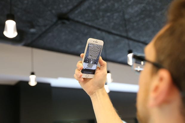 By pointing their iOS device at the ceiling, viewers activate the story's 3D visuals and audio narration, which, in the first site in the series, studies the famous ceiling of the Elbphilharmonie concert hall in Hamburg, Germany.