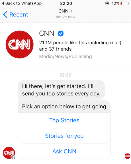 CNN is one of the first news organisations to adopt Facebook Messenger's new bot platform.