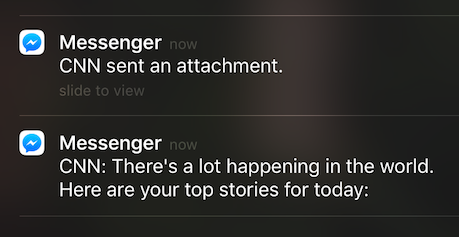 Adding CNN on Facebook Messenger also automatically signs up readers to receive alerts, which some people already seem to be annoyed with and want to unsubscribe from.