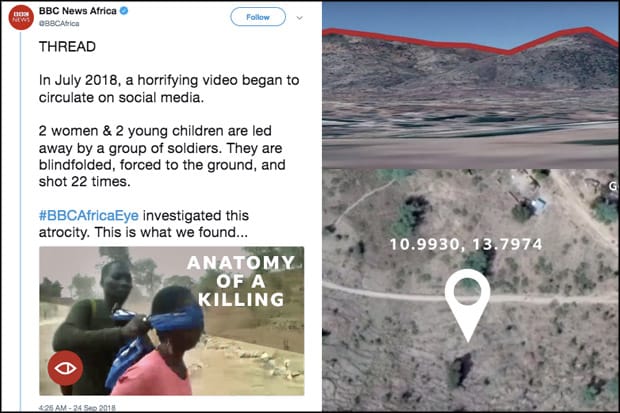 The BBC's new investigative unit, Africa Eye, published a detailed breakdown of its latest project last week, showing how open-source investigators verified a video from sub-Saharan Africa that had gone viral on social media.