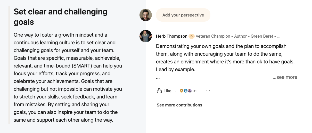The platform rolled out collaborative articles in March. These articles are generated initially by AI and then tweaked by the editorial team. This can be on a wide range of professional topics, like calming public speaking nerves, managing burnout and so on. Head to the collaborative article section, filter by sector and start browsing.