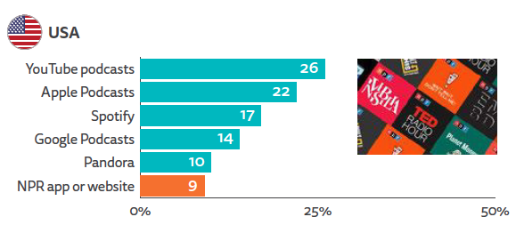 Yes, you read that correctly. In the States, the most popular platform for podcasts (based on a sample of 2,001 digital news consumers) is YouTube.