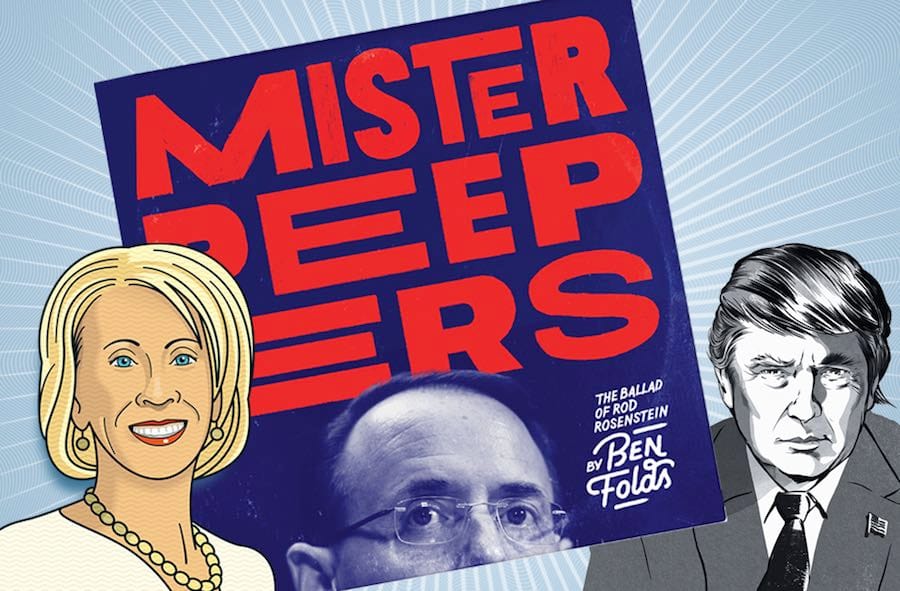 At the centre of the issue is a song created for the magazine by singer-songwriter Ben Folds. Titled “Mister Peepers,” it describes the predicaments Rod Rosenstein has faced as deputy attorney general