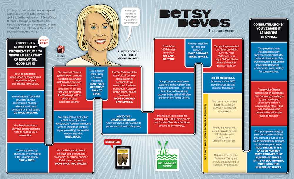 A board game in which readers can play as Betsy DeVos and attempt to survive her first 19 months in Washington