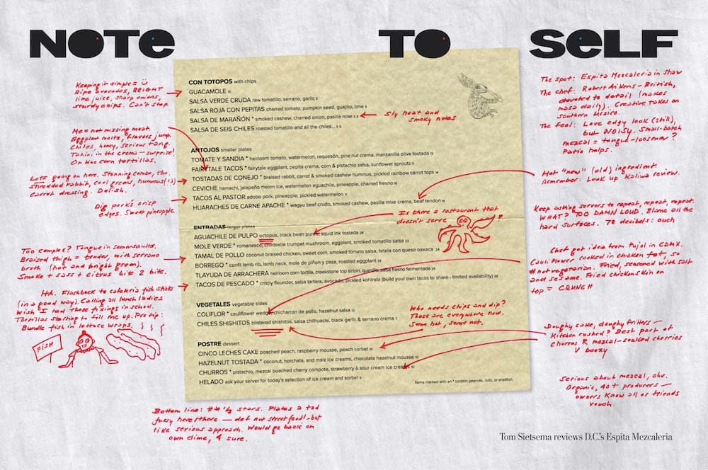 Food Critic Tom Sietsema’s restaurant review as an annotated menu