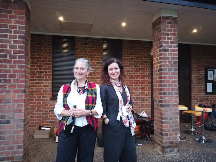 Founders of News on Stage, Catherine Adams of Nottingham Trent University (l) and Dr Glenda Cooper of City University of London, (r) after the performance of News Cabaret at Wandsworth Arts Fringe in July 2021
