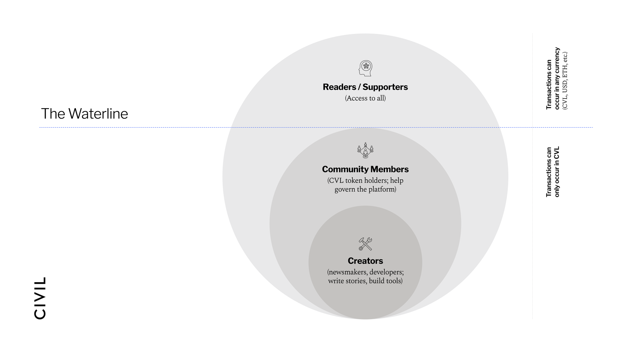 But those who wish to get more involved with the inner workings of the platform and go 'below the waterline' can also purchase Civil tokens, which can be used to then weigh in on decisions being taken or to challenge applications from new newsrooms wishing to join.