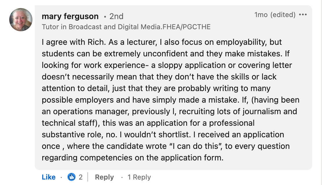 Others were much more willing to cutting the students some slack and I was also very pleased to see lecturers weighing in.