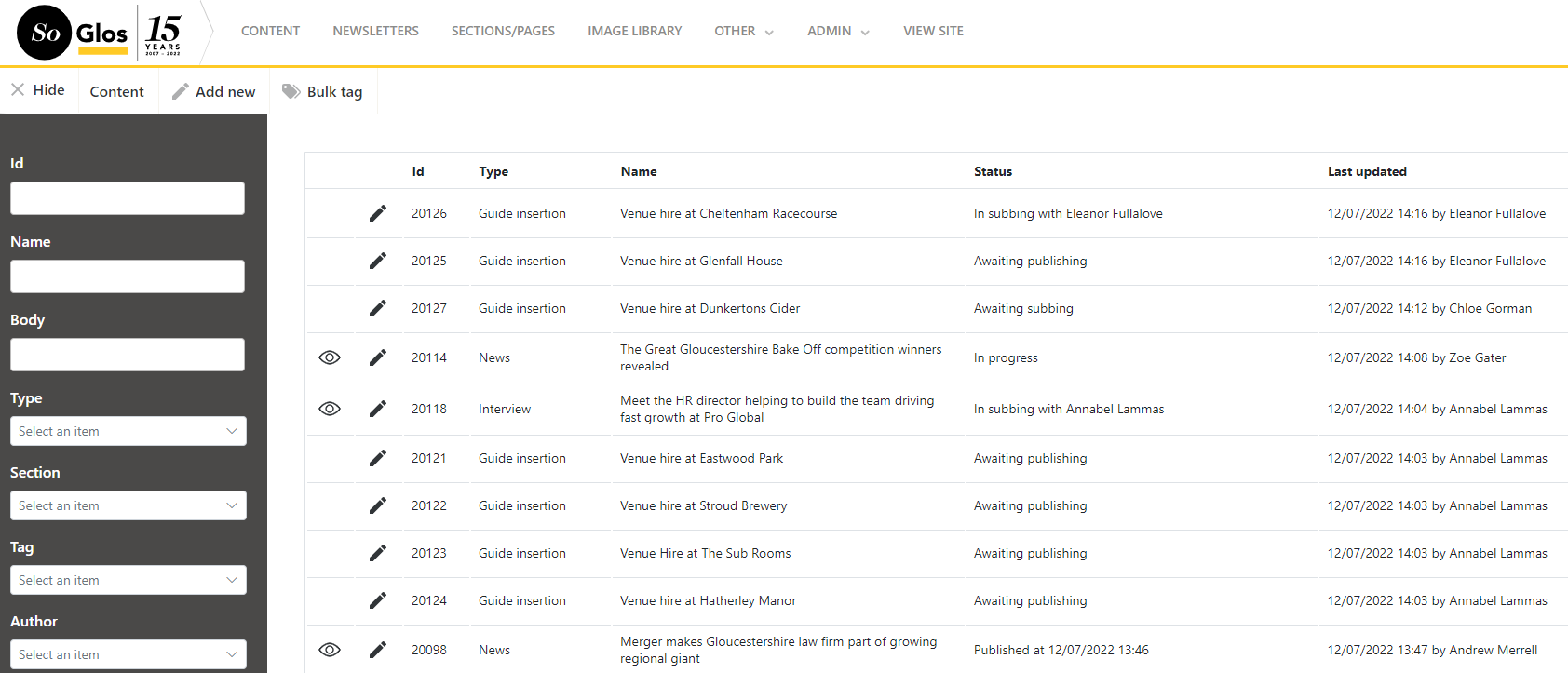 "You'll never see outdated content on SoGlos because all the data that is applied to every article we're producing means that our CMS is doing tonnes of clever things in the backgrounds that as humans we would have had to do.